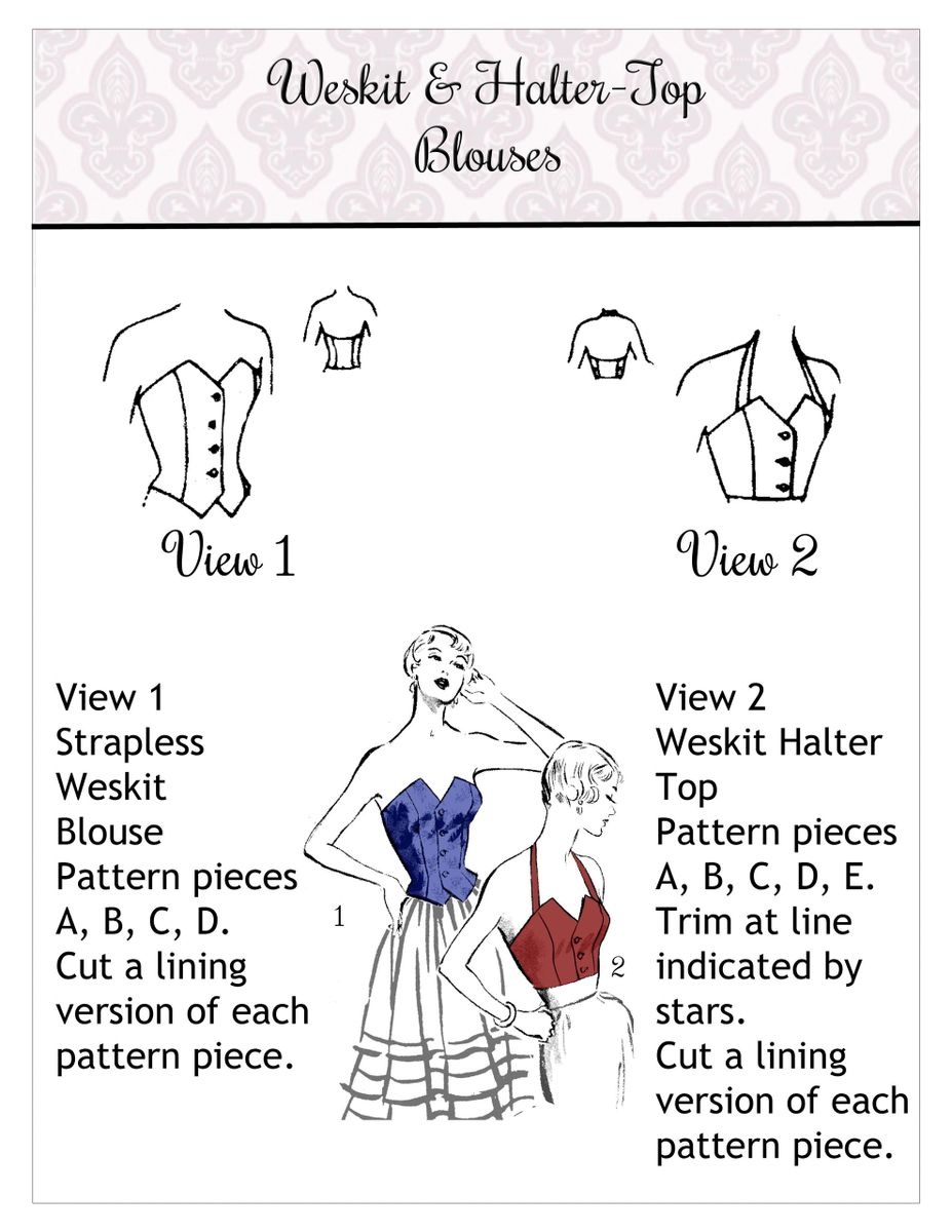 Vintage Sewing Pattern Strapless Halter Top Blouses 1950s Style Multi And Plus Size 1032